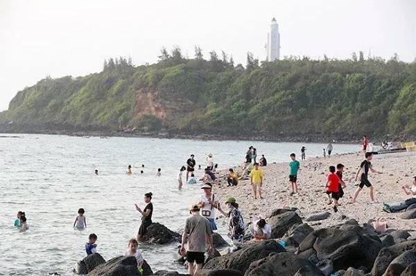 游客在峨蔓火山海岸海边嬉戏(儋州市融媒体中心供图)
