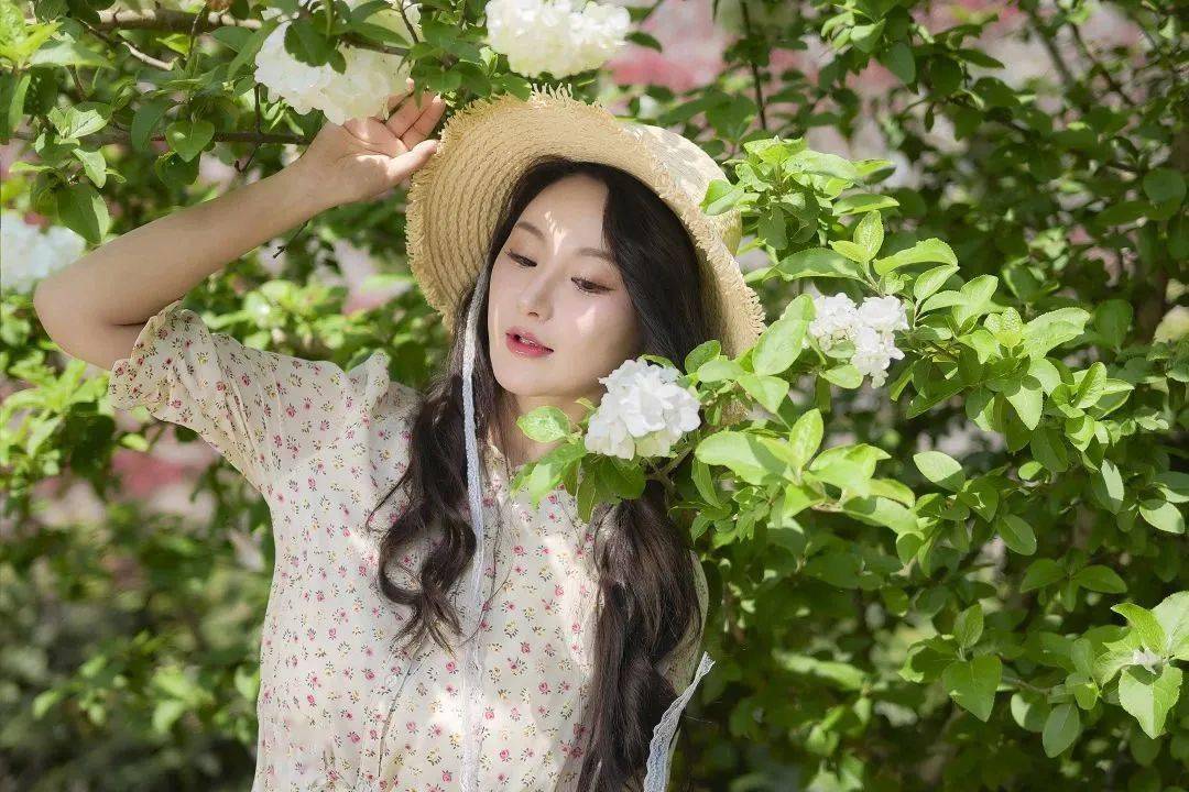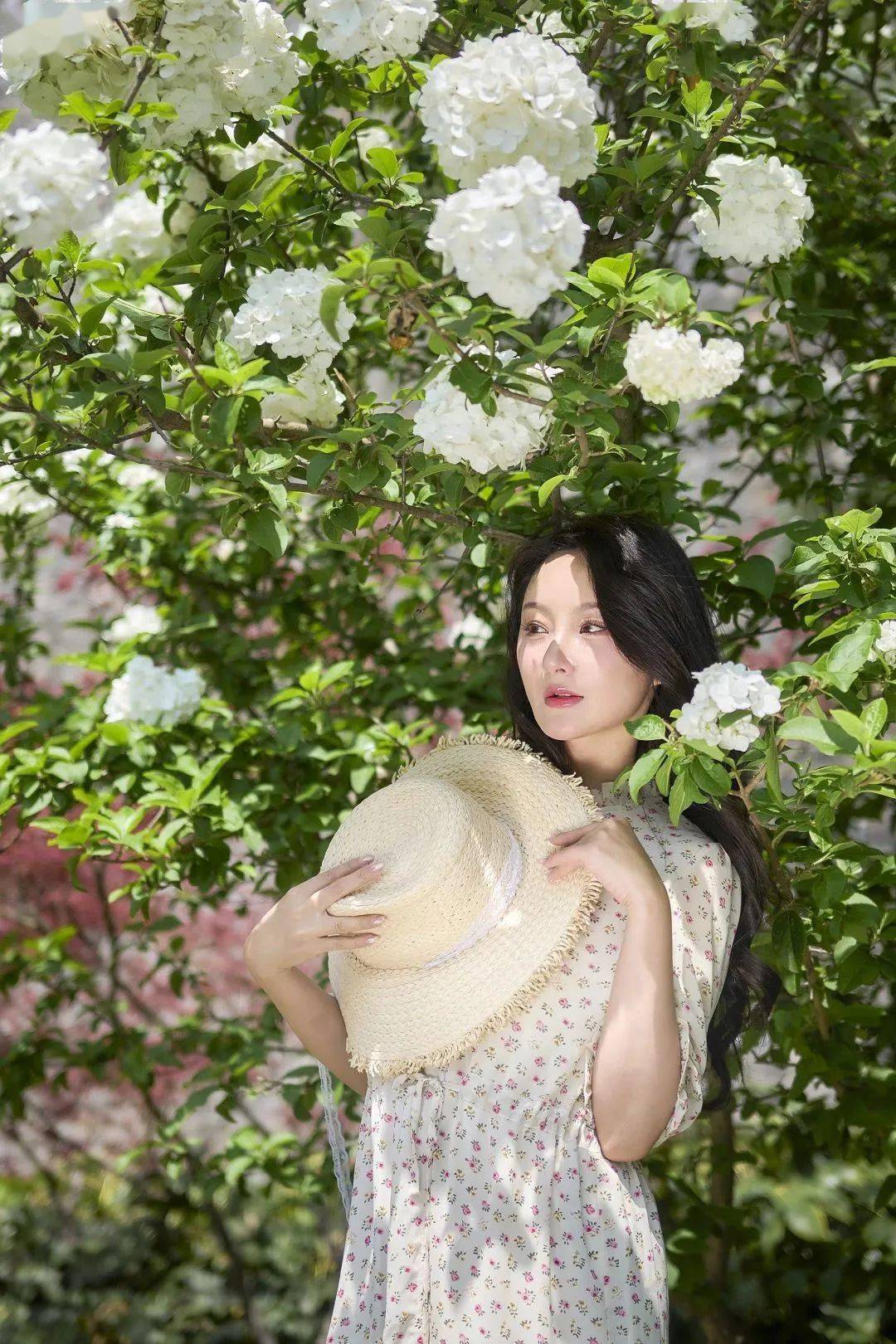 次日踏青,南京终于结束了长达半个月的绵绵春雨,迎来了久违的阳光。4月正值绣球花的花期,我和闺蜜便相约来到了繁花盛开的公园内。上午十点多的光线正好,在拍摄时我只用了补光板对人物面部进行光线填充,这也是在光线较强的场景下拍摄人像的常用技巧。