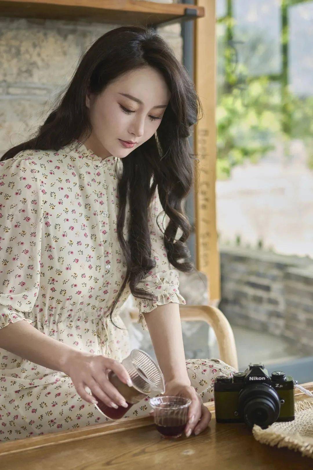 在这样的雨天,我和闺蜜坐在精致的小木椅上,手里捧着温暖的咖啡,听着窗外的雨声淅沥,偷得浮生半日闲,这样的时刻足以治愈平日的疲惫,值得用相机记录下来。尼克尔 Z 26mm f/2.8镜头等效全画幅约为40mm,更容易在小空间里拍出氛围感,适合将环境氛围融入画面中。