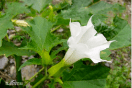 别名大喇叭花,植株较高,约0.5-1.5米,全株均有毒,种子毒性最大。毒性物质为莨菪碱、东莨菪碱和阿托品等。食用和外敷曼陀罗叶均能引起全身性中毒,一般在 食用30分钟后出现症状,多为急性突然发病。