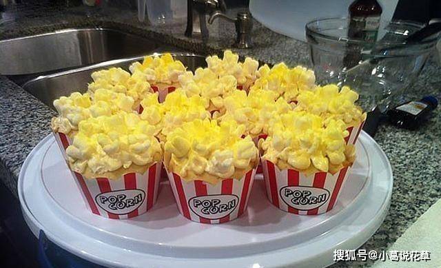 我觉得这位厨师很用心,把蛋糕做成了爆米花的形状。我觉得这个蛋糕真的很漂亮。如果加点奶油会更好看。这种蛋糕一定很受小孩子的喜爱,造型也很独特,不知道该从哪里下刀。