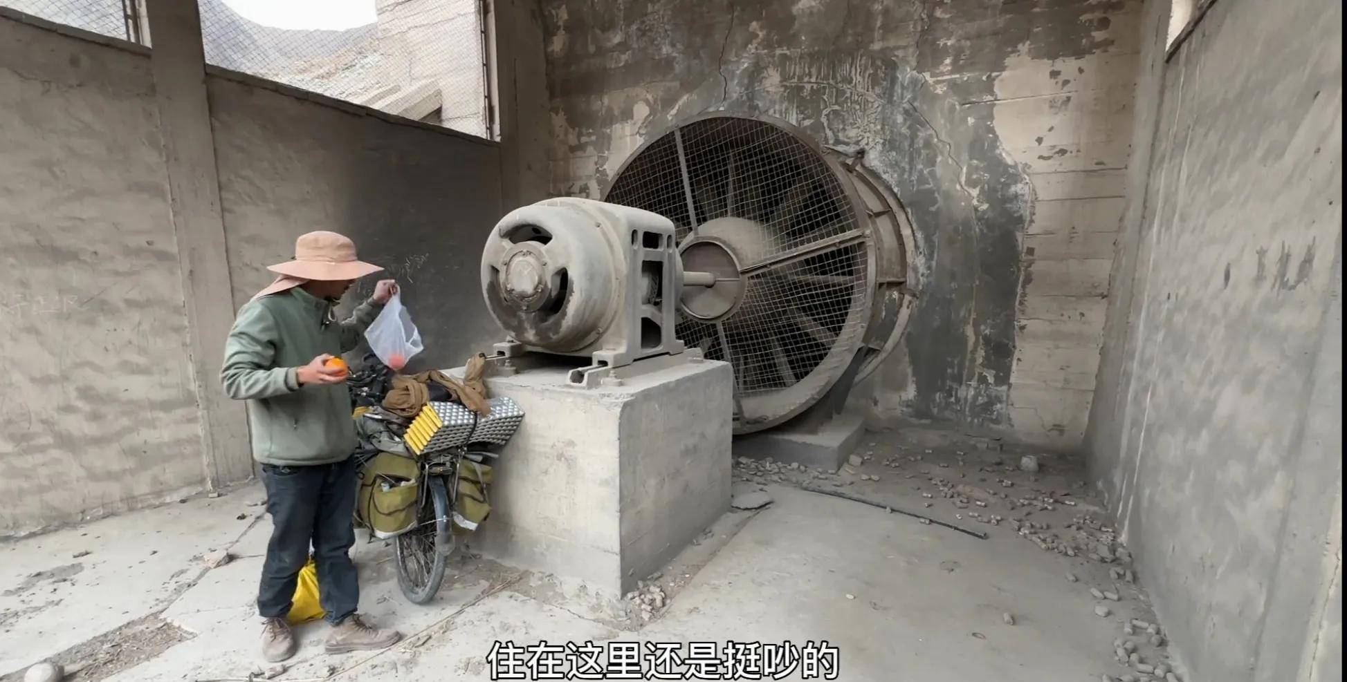 伟元晚上露营在隧道的通风机旁,以前从隧道里走,也没觉得有多大,没想到竟然这么大,后面还有电机。对于深不见底的东西,水也好、洞也好,总是有莫名的恐惧。