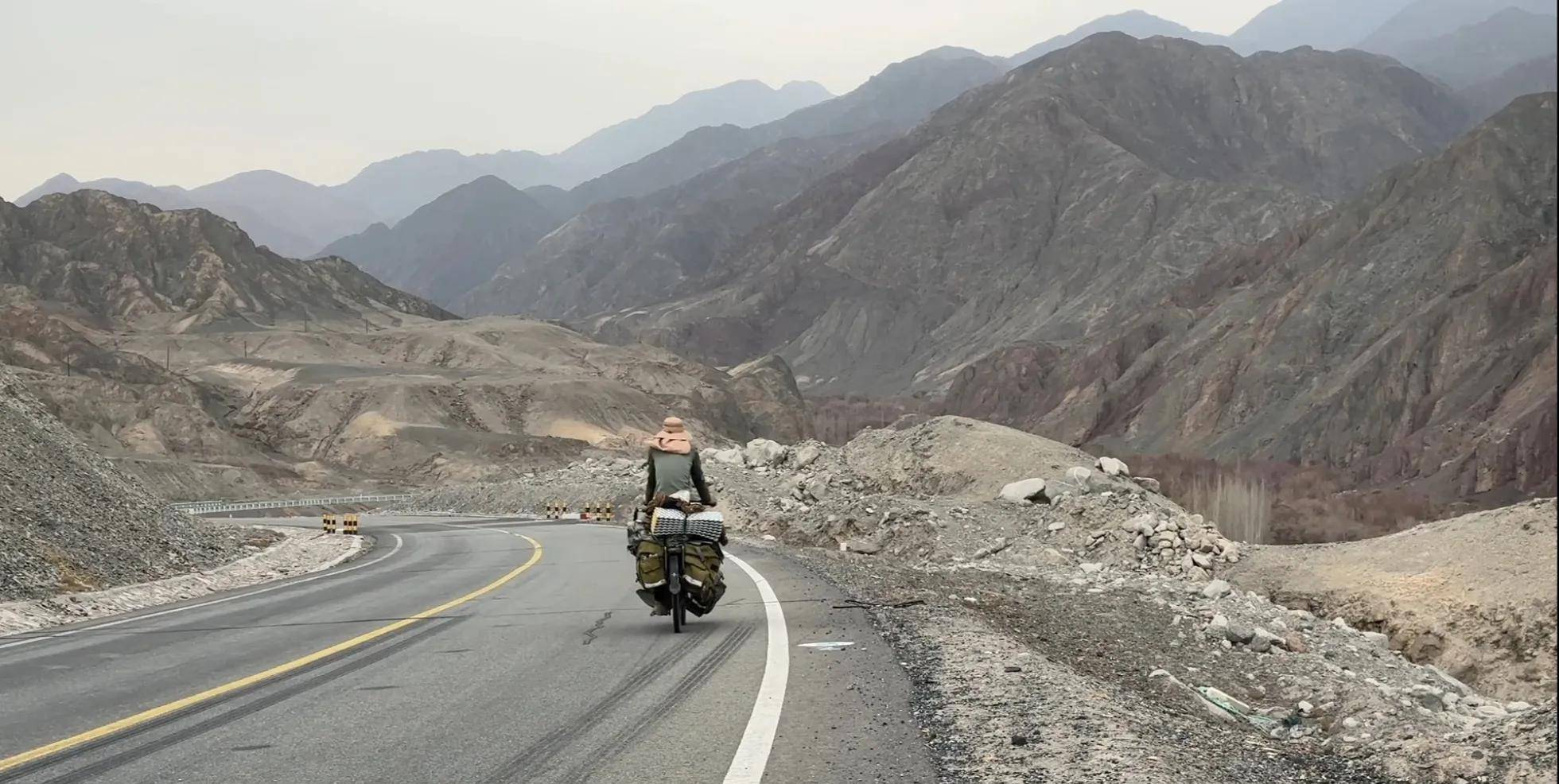 在峡谷间骑行,两边都是山,伟元还学起了鲁迅,“我的旁边有两座山,一座是天山,另一座也是天山。”此次的路线虽然较短,但也比较艰难,是1条非常小众的路线。