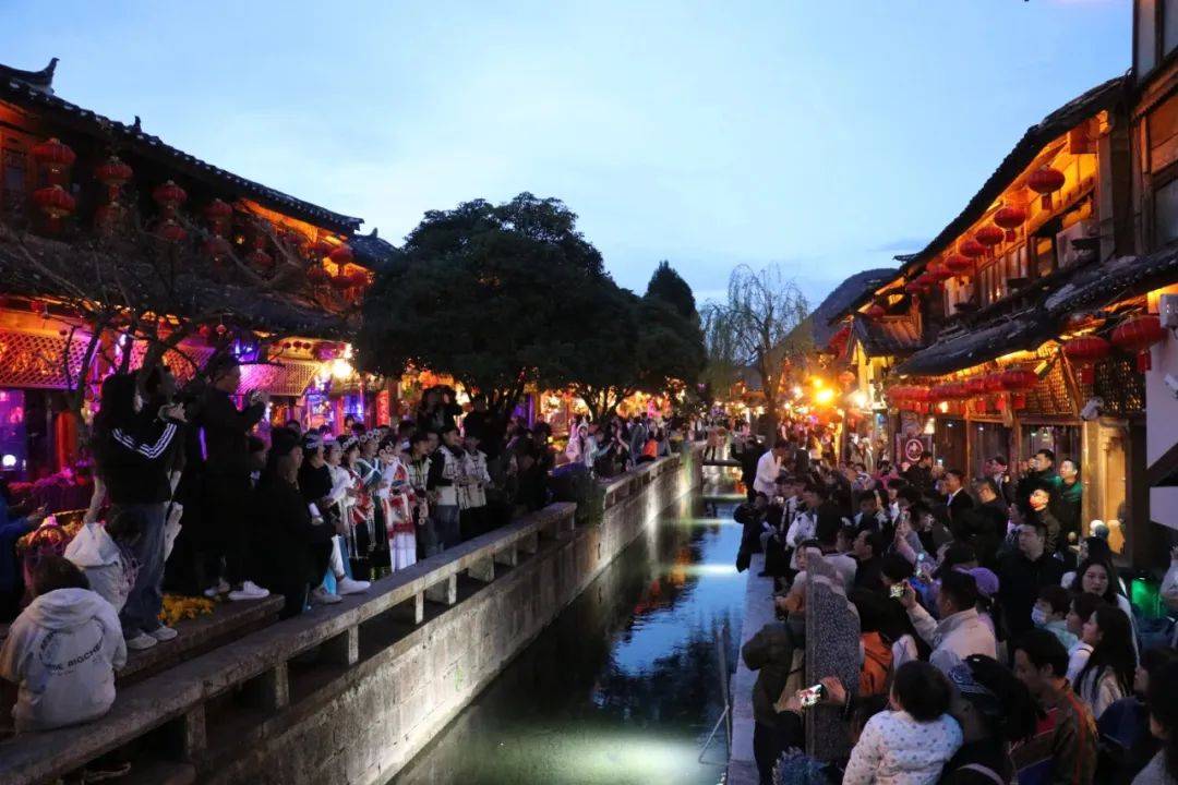 从丽江古城景区发布的照片来看,丽江虽算不上“人山人海”,但也是人流如织。