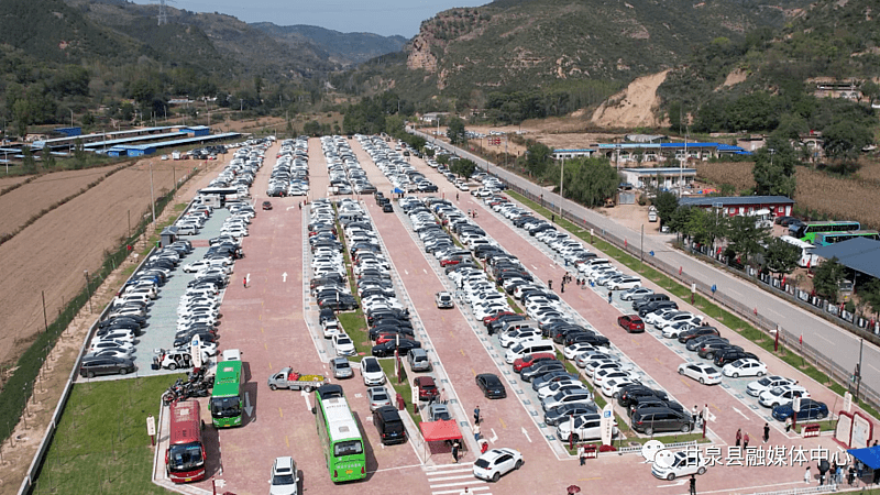 “五一”假期,记者在甘泉大峡谷景区看到,游客服务中心停满了旅游大巴和私家车,峡谷内大批游客游玩打卡。