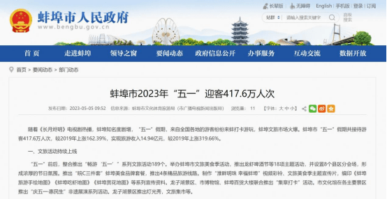 连日来,优酷奇幻仙侠剧《长月烬明》火爆荧屏让蚌埠一夜“出圈”。“五一”期间,蚌埠文旅局顺势推出首届文化旅游美食节,开设《长月烬明》旅游专线,让剧迷能一步到位打卡同款景点。无数游客“埠”约而同,“蚌”赴而来,带动蚌埠“五一”出游热。数据显示,“五一”假期,蚌埠共接待游客417.6万人次,较2019年上涨162.39%,实现旅游收入14.94亿元,较2019年上涨319.66%。