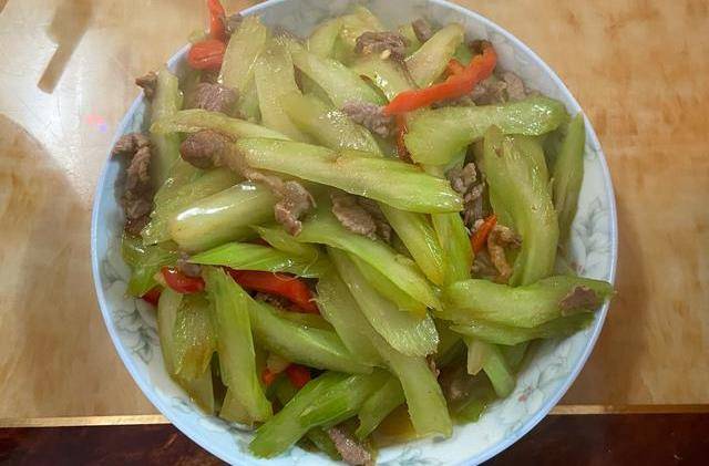 【芹菜炒肉】芹菜也是不少人讨厌的蔬菜之一,因为它本身含有的特殊气味,让人有点避而远之。可是我和我的家人,恰恰就很喜欢它的特殊气味,因此它总会出现在我家的餐桌上。炒起来也是简单不费事的,猪肉热油下锅,大火炒到变色,倒入芹菜和红辣椒,继续炒到食材断生后,调入盐和鸡精,翻炒均匀即可出锅。