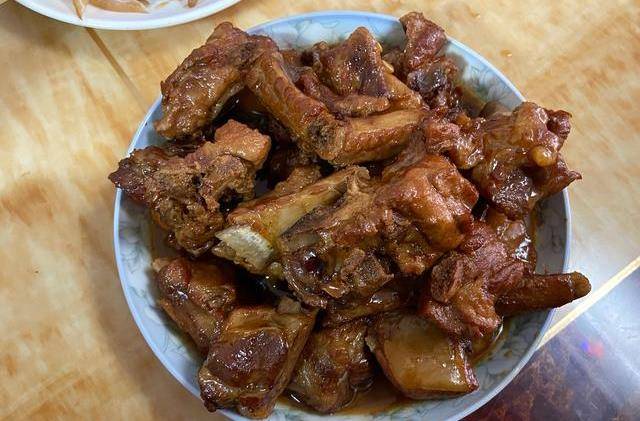 【红烧排骨】红烧排骨是比较国民的一道家常菜了,多数家庭都有做过,只不过做法上稍有不同。我家的做法比较简单,不用炒糖色,都是直接把焯过水的排骨热油下锅,大火炒至两面焦黄,调入生抽、十三香、蚝油、老抽、黄酒、盐,炒到上色均匀,倒入没过食材的热水,盖上盖子,大火煮沸后,转小火焖煮至食材软烂后,就可以收汁出锅了。