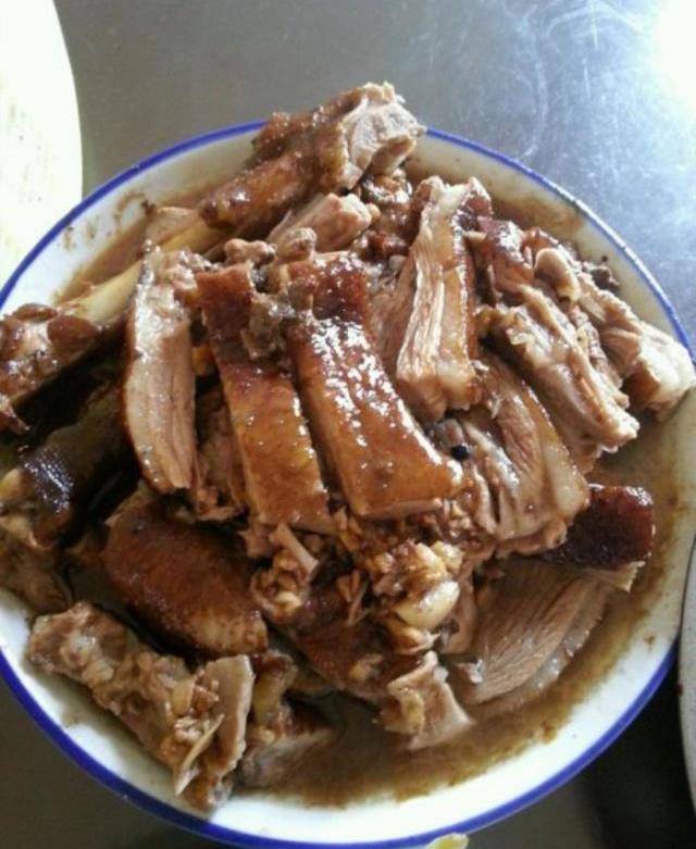 第八步是等到还剩一些汤汁的时候,慢慢的把鹅肉盛出来,然后等待放凉,然后这道菜就做好了,非常的好吃。