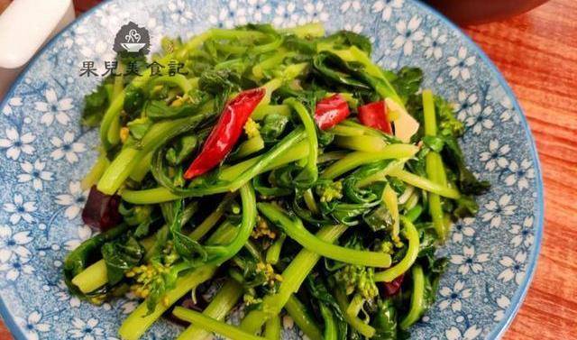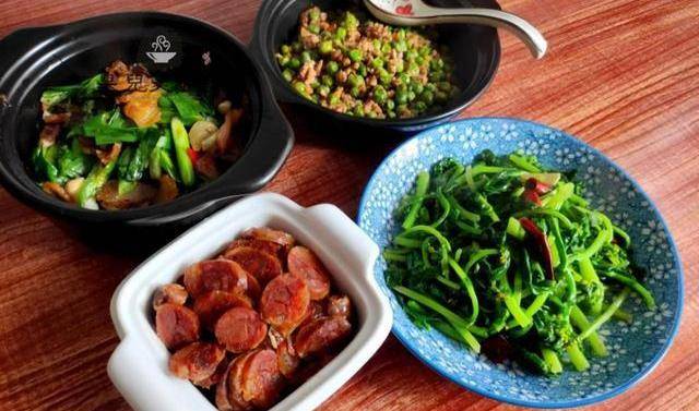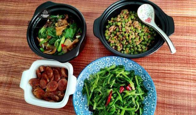 前面三个菜都是肉菜,一定还是要配一份菜,一般我们都炒蔬菜苔藓,加大蒜蓉,炒辣椒炒蔬菜苔藓的香味入味,我们家百吃不厌。