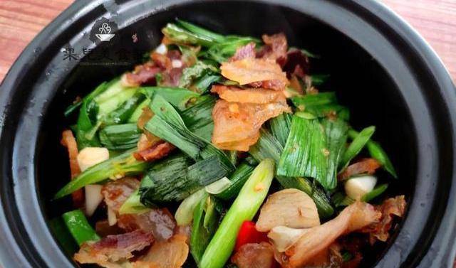 蒜苗培根炒菜是四川人爱吃的家常菜,买了两块蒜苗和培根一起炒,吃起来不太油腻。