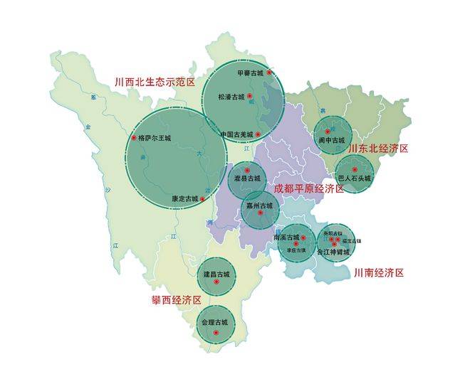 在川西北生态示范区(范围包括阿坝藏族羌族自治州、甘孜藏族自治州),我们认为位于九寨沟西环线上的茂县中国古羌城+松潘古城+九寨沟县甲蕃藏寨城组团,位于甘孜州的格萨尔王城+康定古城组团,将会为广大游客洞开一扇充满高原民族风情的、秘境式的、史诗般的古城之门。叩开了这扇大门,我们就走近了卓玛、走近了珍珠,走进了高原红、彩云蓝、天空城。