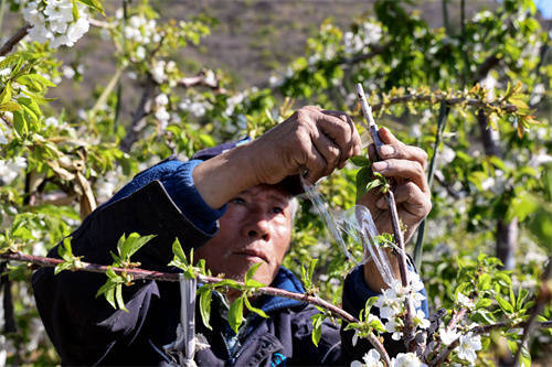 顺义区龙湾屯镇山里辛庄村果农嫁接樱桃树精益求精 刘长堃摄
