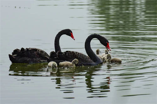 昌平滨河湿地公园天鹅一家嬉水 宋建国摄