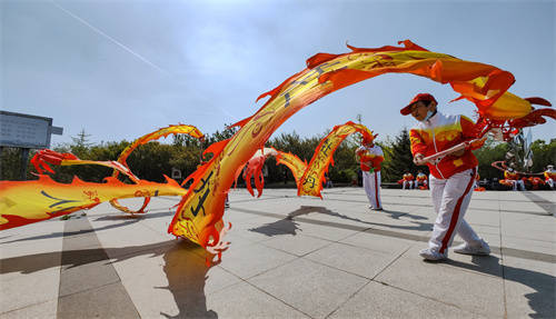 通州区牡丹龙之队彩绸舞蹈队,平均年龄70岁 乔健摄