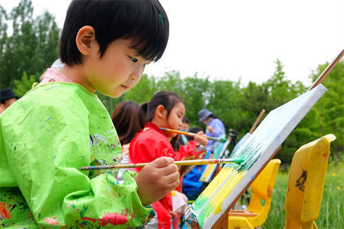 小朋友亲近大自然在花海写生杨建国摄