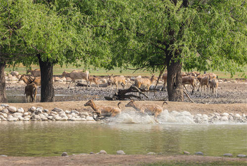 北京南海子麋鹿苑博物馆内水光潋滟, 呦呦鹿鸣。王松摄