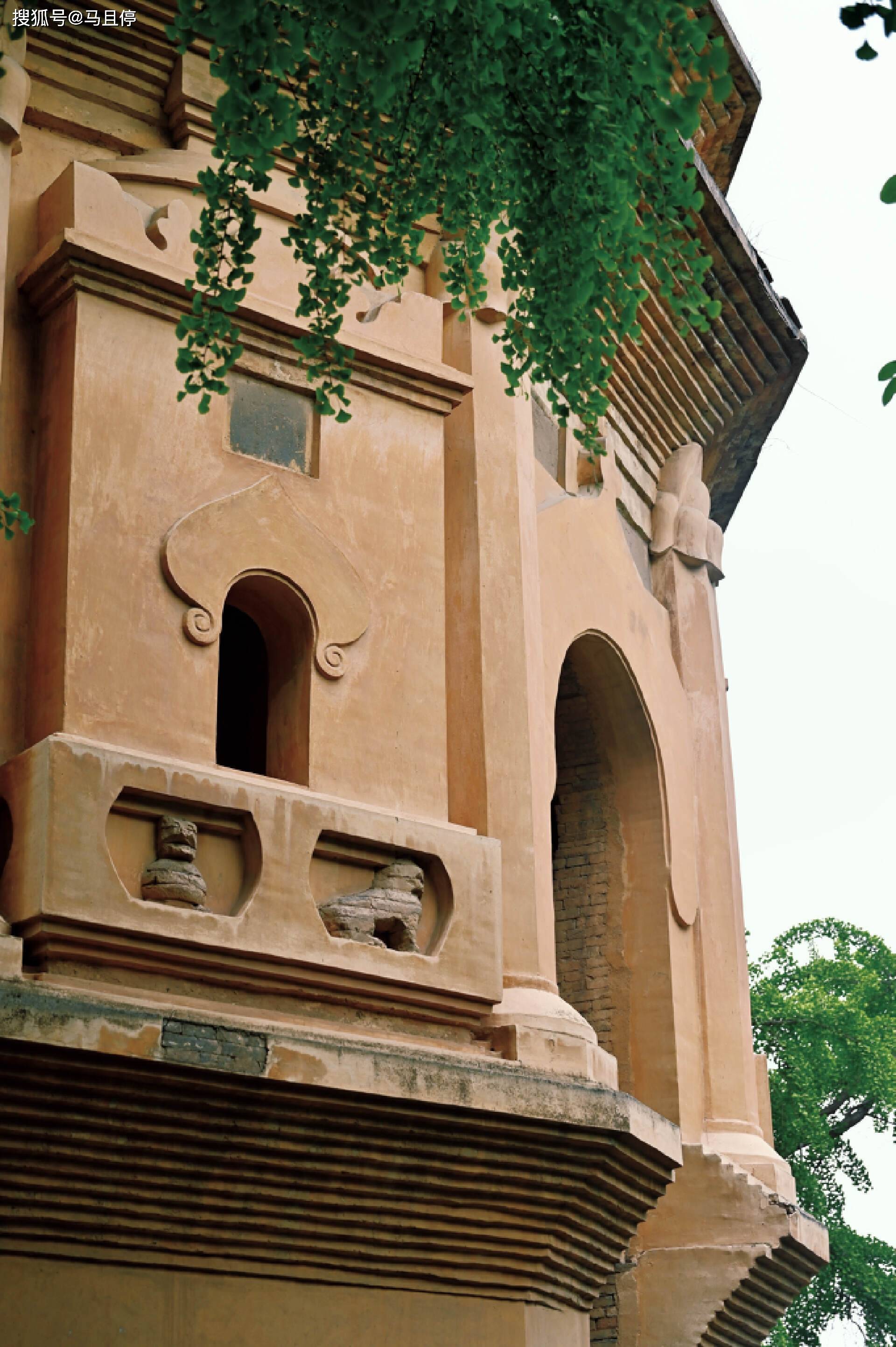 除了古老之外,嵩岳寺塔还有几处独特之处,它是中国现存唯一一座12边形结构的砖塔;券门上印度风火焰券门楣也很特色,圆筒状的外形也成为玉米楼千禧广场的借鉴元素。