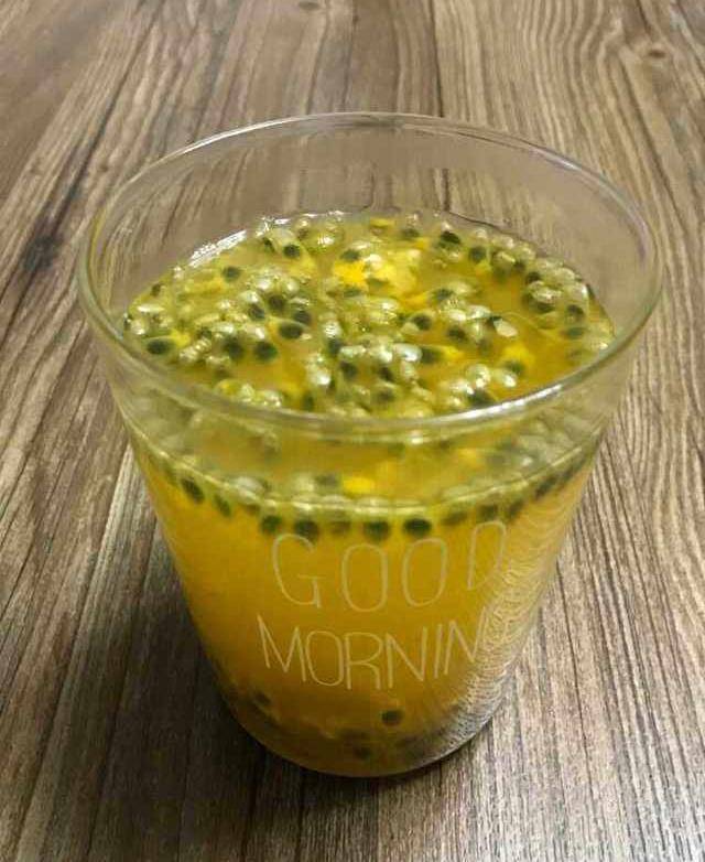 这个是百香果密。百香果果香气浓郁,甜酸可口,能生津止渴,提神醒脑,食用后能增进食欲,促进消化腺分泌,有助消化。制作时一切一刮装进罐浇上蜂蜜即可,非常方便。
