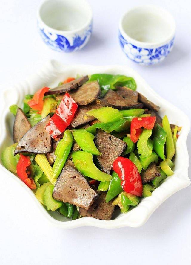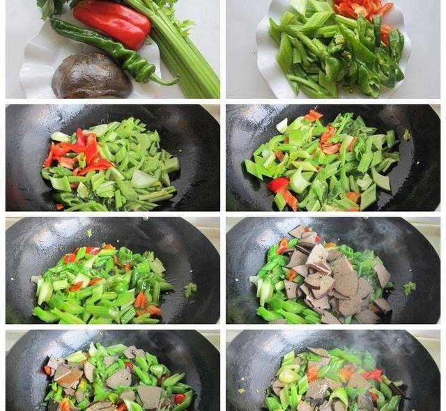 2、芹菜翻炒出香味才能加猪肝翻炒,这道菜不可久炒