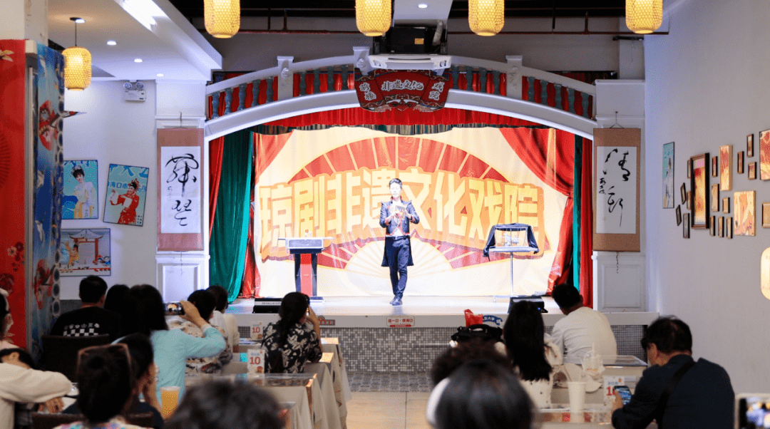 在琼剧非遗文化戏院公益惠民演出中,以非遗文化为主题的传统琼剧、八音演奏、东坡文化等艺术类型的精品剧目轮番上演,获得阵阵掌声。“小导游”走上骑楼为市民游客讲述骑楼故事;龙华非遗文创展,现场展示椰雕、冼夫人信俗、海南沉香等非遗文创产品,延续传承,让市民游客体会深厚的骑楼非遗文化。