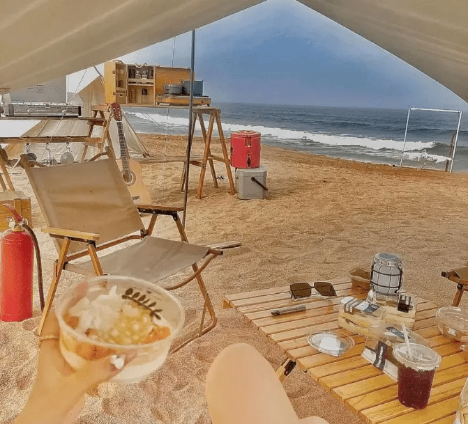 入住网红印第安帐篷,在这里,来一组海边网红大片,大家可以自行配备一些拍照道具更出片哦...