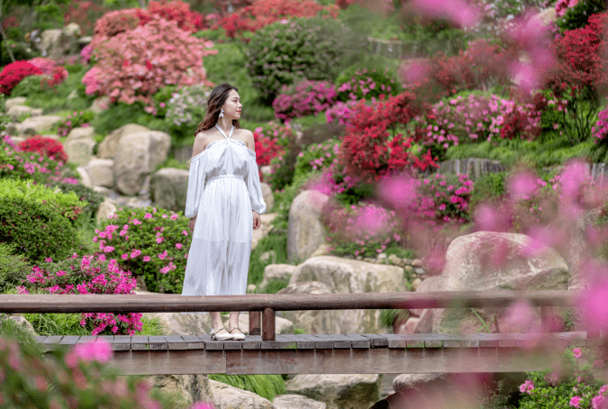 杜鹃谷是由日本设计师全力打造,大片的杜鹃栽植于山坡之上,五步一花、十步一景。