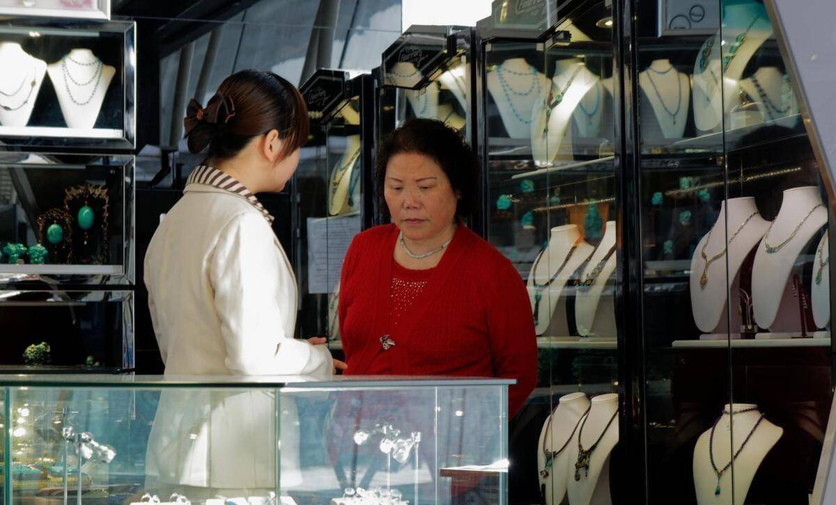 听了小李的介绍,我们便跟着他来到了一家翡翠店。店里面堆满了各式各样的翡翠,我和男友也开始仔细地观察起来。小李则在一旁耐心地解释着每一件翡翠的种类、质地和价格。