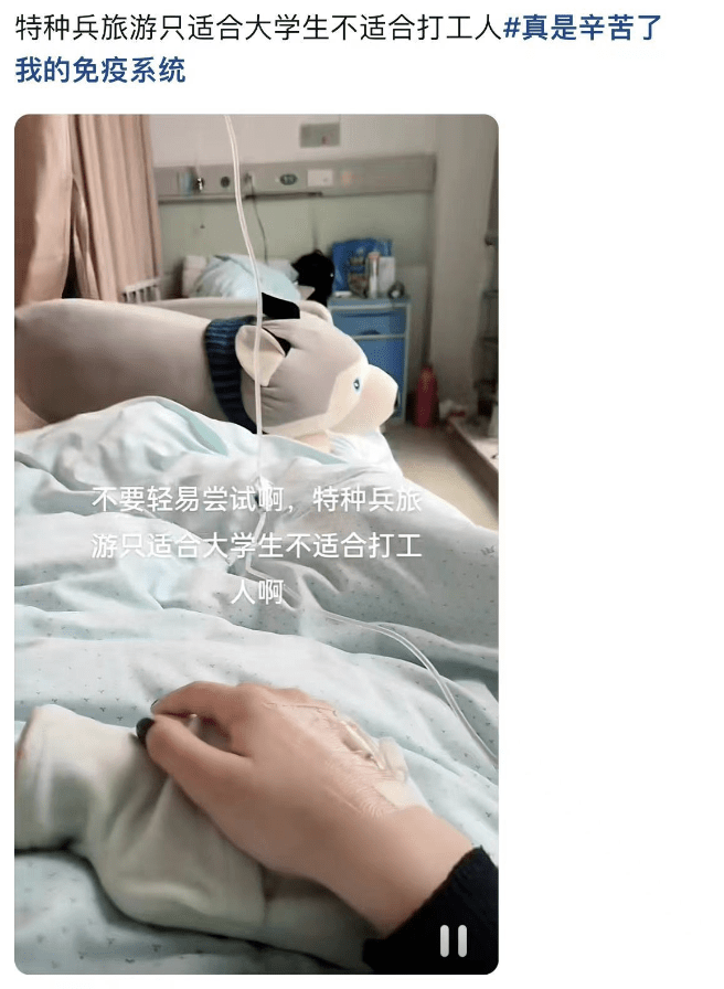 然而,“特种兵式旅游”并不适合所有人。 一些挑战极限式的旅行也需要体力的支撑,如果身体无法跟上旅行的节奏,还会招致身体的“报复”,不少完成“特种兵式旅游”者懊悔不已,他们游完回家有的病倒,有的直奔医院门诊。