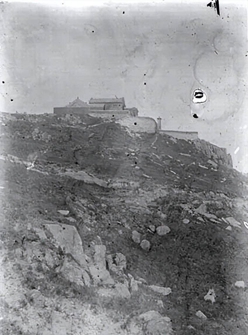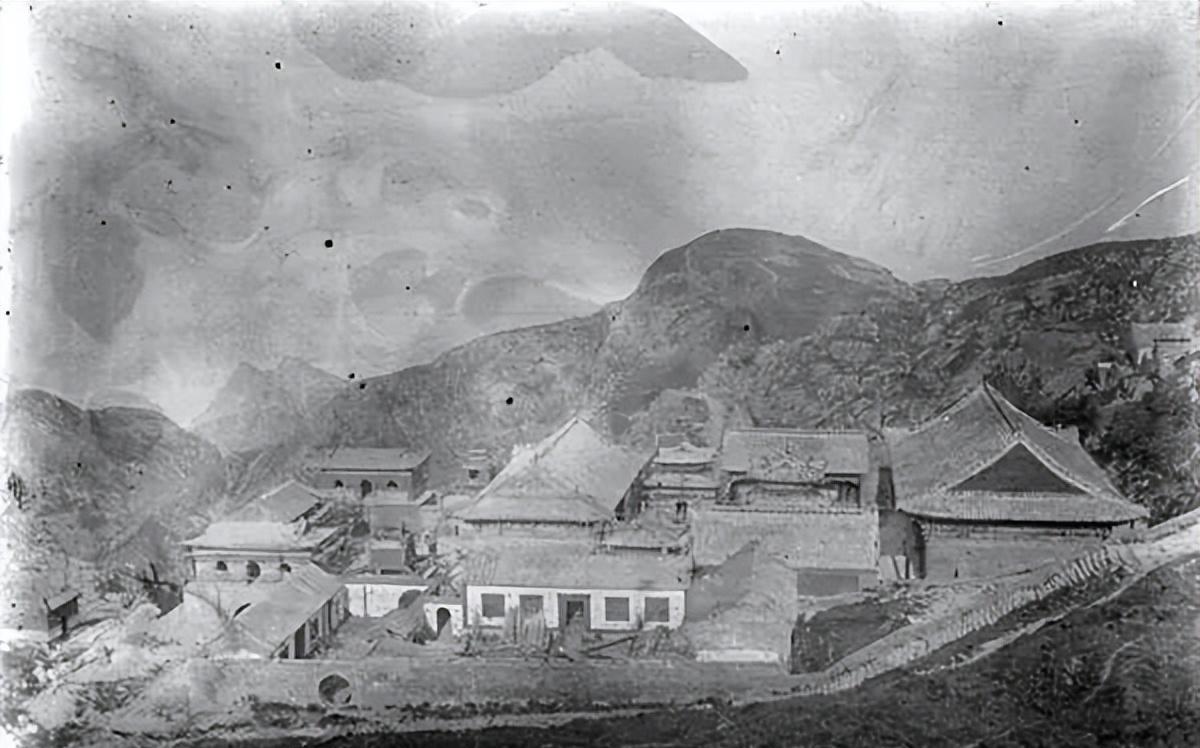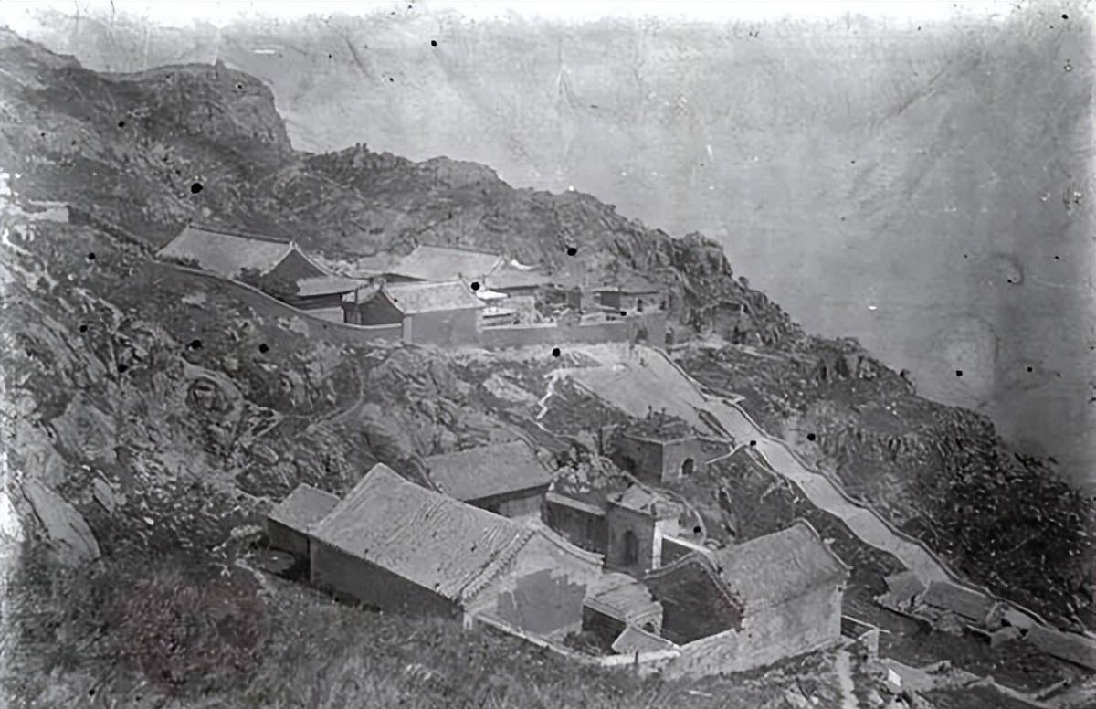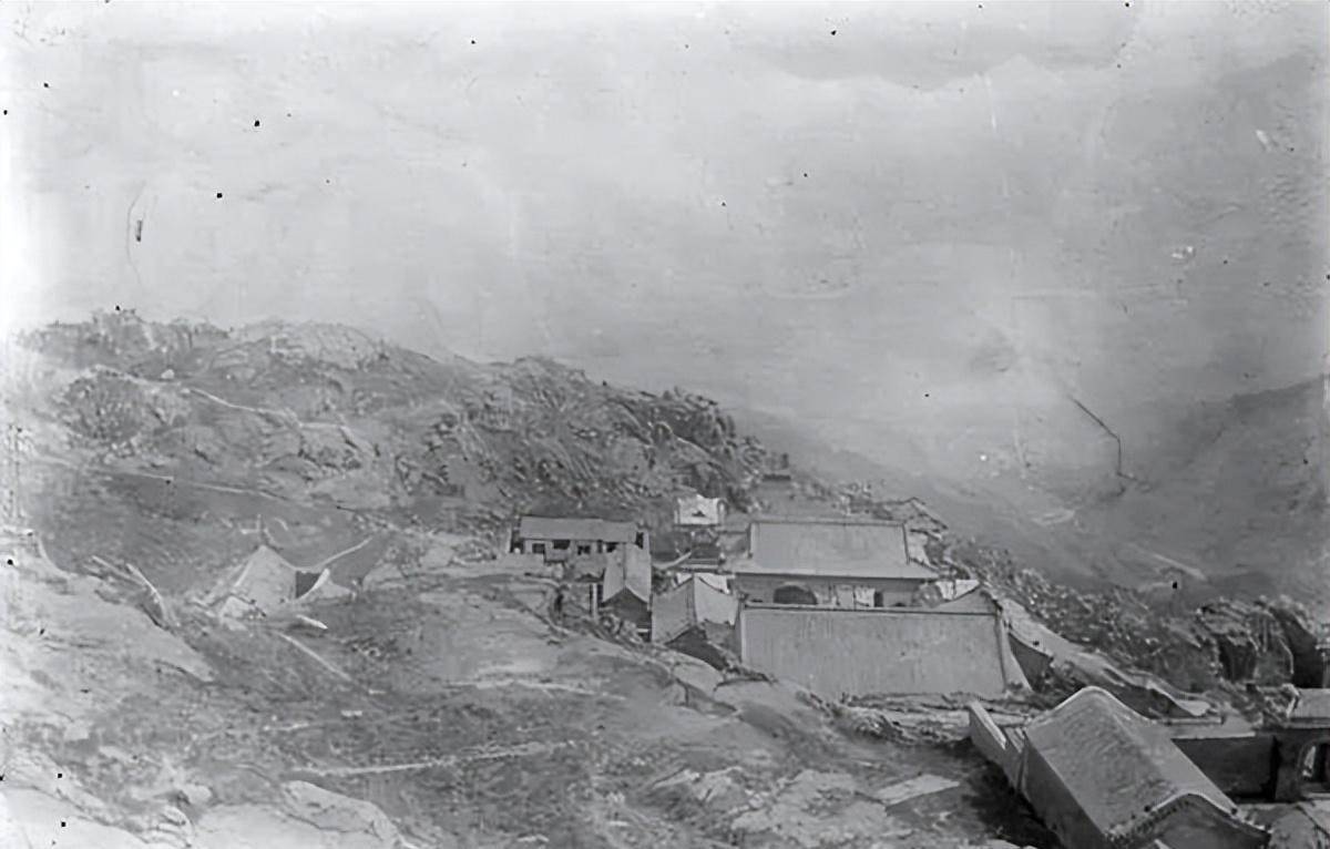 1907年,从泰山山顶拍摄的山中建筑。
