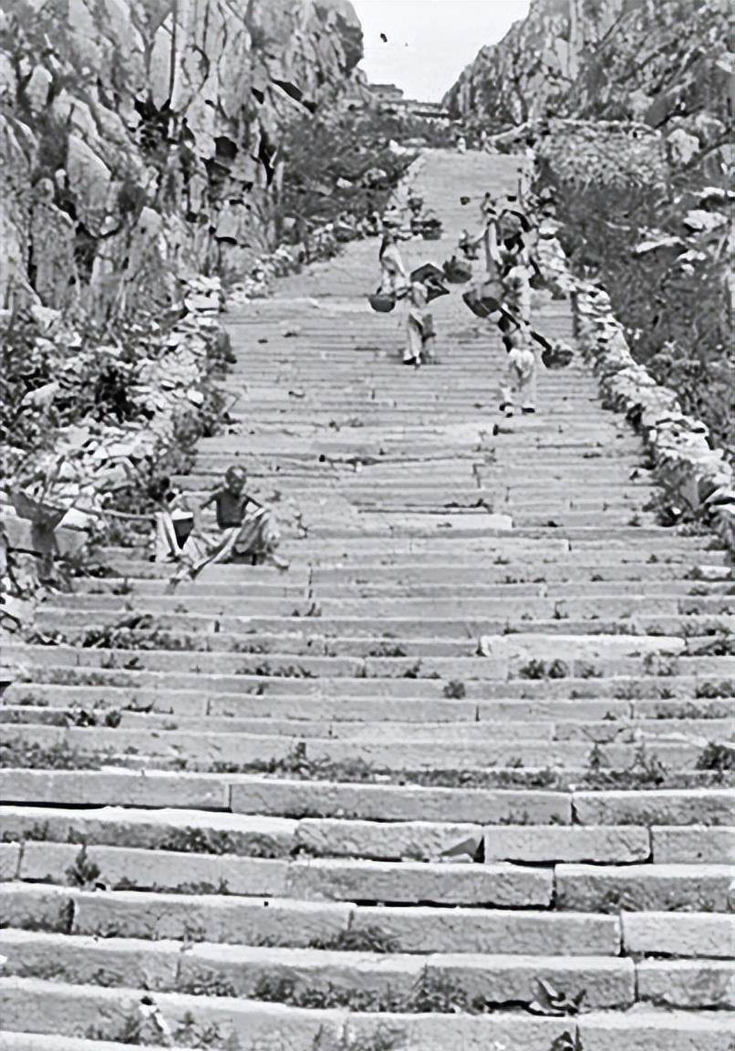 1907年,泰山盘山道,有几个清朝的搬运工。