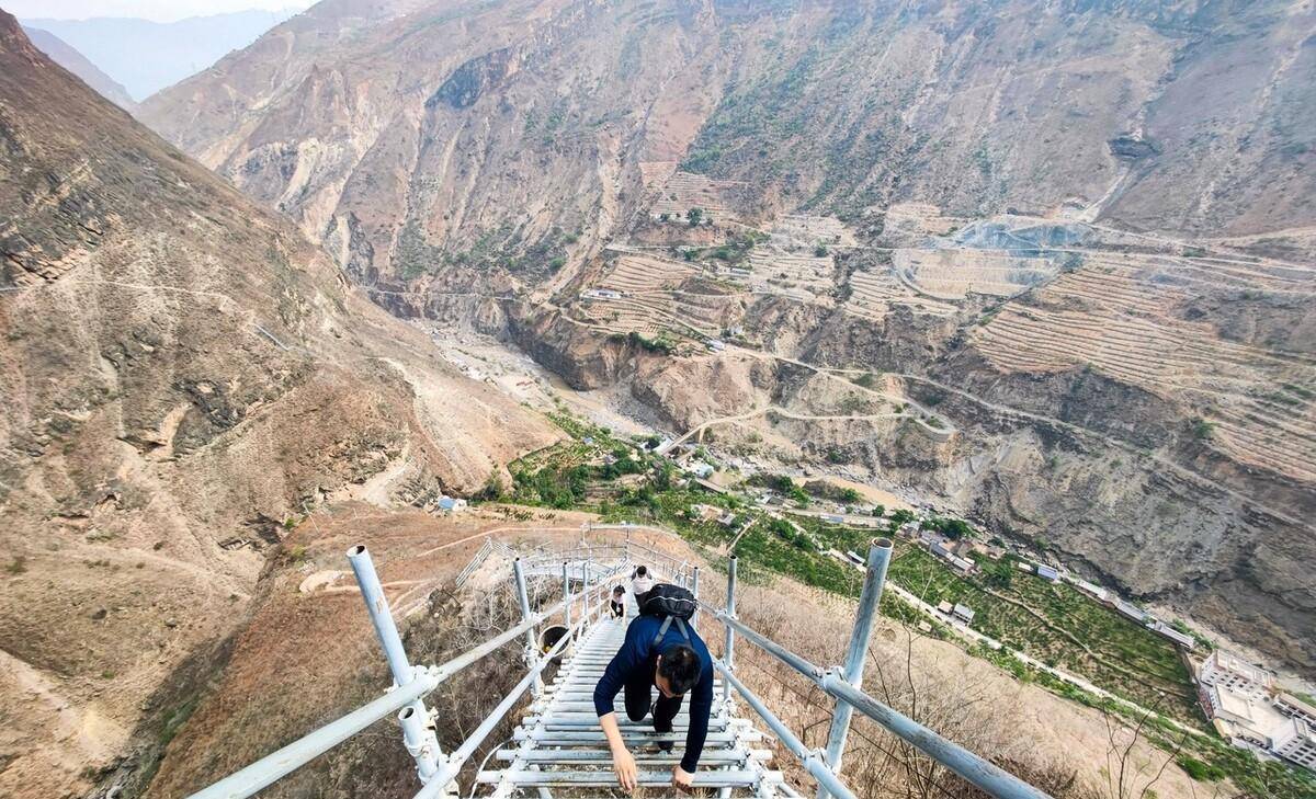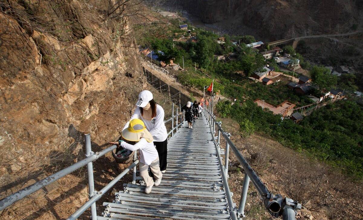 过去的“悬崖村”现在变成了网红景区,游客纷至沓来,体验风土人情、欣赏峡谷风光。2023年5月2日,四川大凉山,无数游客慕名未来,正在攀爬“悬崖村”新建成的钢梯。显然这对于“悬崖村”居民已经方便了很多,但对于不经常攀爬的游客还是有一定难度。