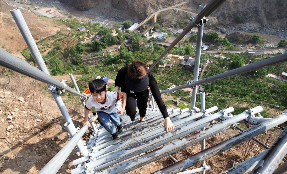 放在以前,村民想要外出时,必须小心翼翼地爬过距离地面800米高的藤梯。因为地势险峻,施工困难,整个村子一直以来连电都没有。村民进出悬崖村,平时就是山下藤梯,一般每周下山赶集一次。种植的花椒和核桃丰收时,他们就背到离山脚几公里远的莫红小集镇交易。孩子上下学尤为不方便,困难而又危险。