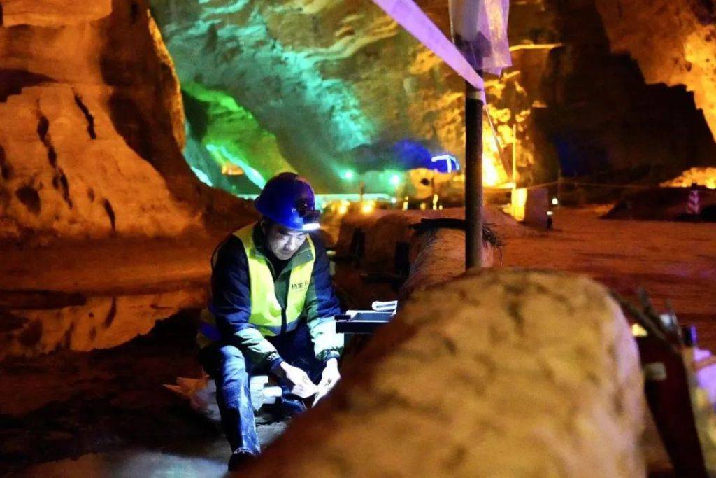 洞穴深处,景区后洞建设如火如荼,数十名工人正对步道沿线的路灯进行调试。在已调试完成的路段,两边灯光绚丽多彩,置身其中,仿佛穿梭时光隧道,如梦如幻。