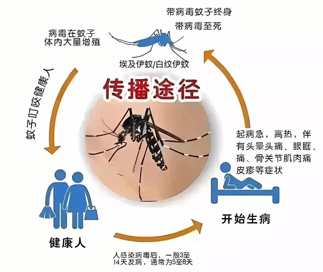 伊蚊吸了患者的带毒血液后,可在体内复制,但这毒对它一点影响都没,只会通过叮咬让你难受,且还能通过虫卵传给后代,世世代代都带毒。