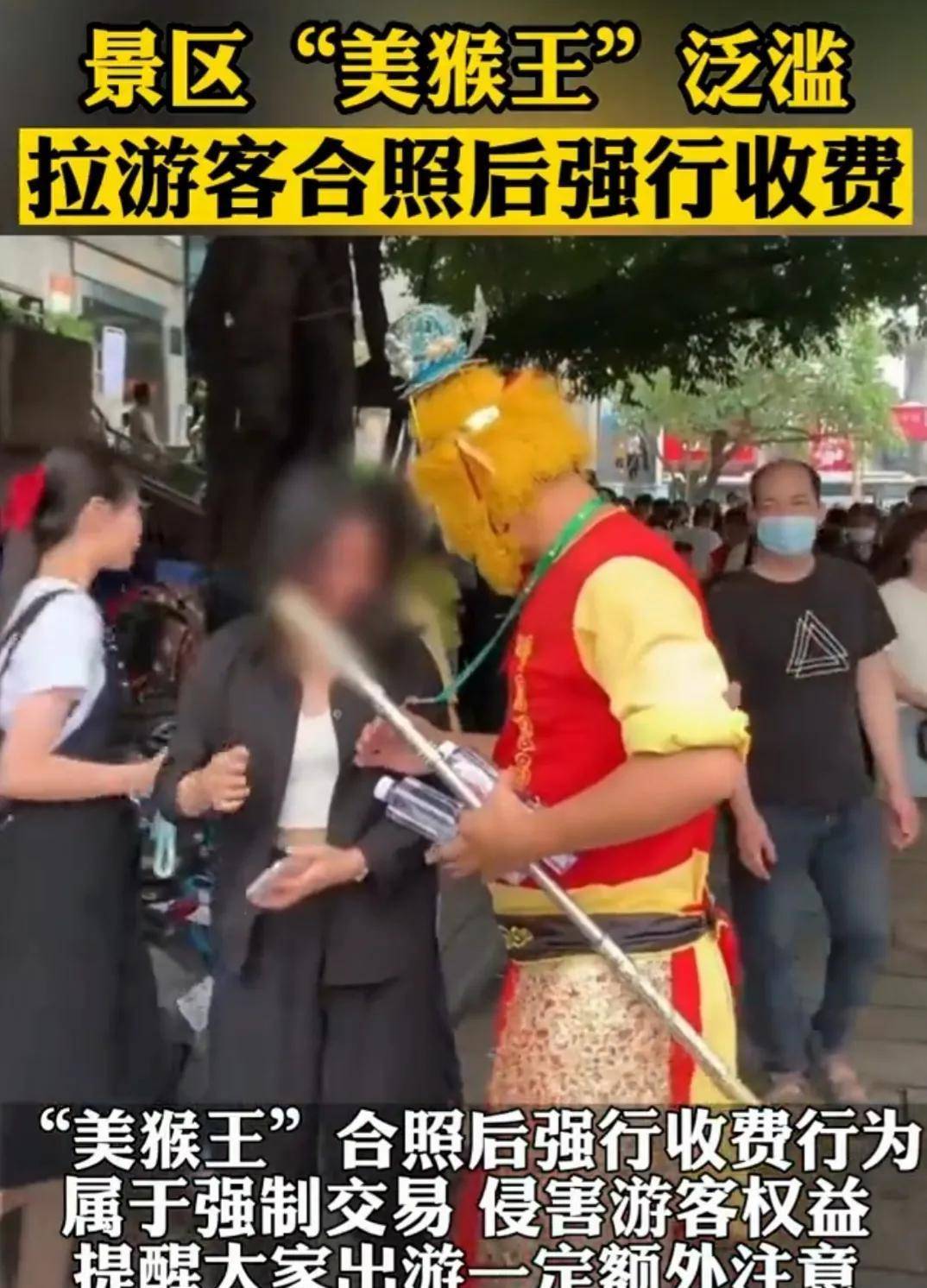 其实之前在别的地方也出现过类似的事情,大多数也是扮演美猴王的,有的还强制一些和小朋友合影,完了之后就找家长收取20块钱的合影费。
