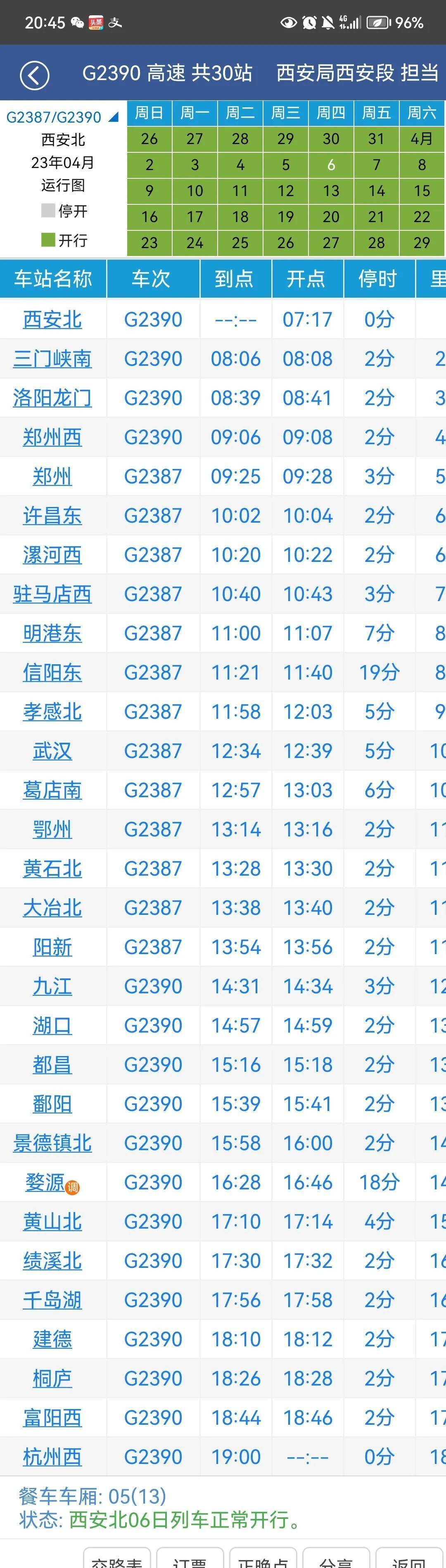 本次旅客列车是由陕西西安发往华东地区浙江杭州的高速动车组列车,担当客运业务的是西安铁路局,西安客运段。