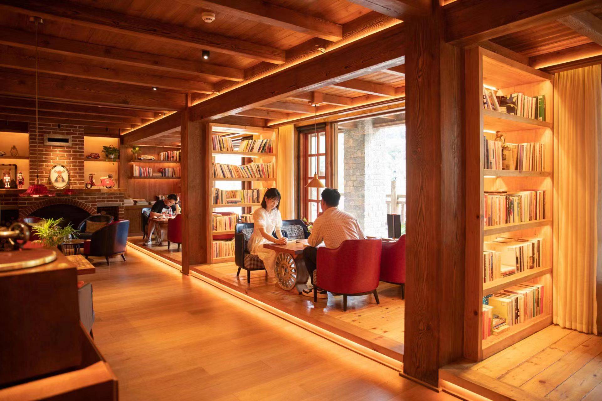 各式各样的沉浸式艺文体验馆分布在山野各处,欣赏大自然鬼斧神工的同时,到梦枕书香·书吧寻一本好书,临窗而坐,沐浴暖阳,配上一杯咖啡,沉浸在书本的世界中;到听瀑·果茶体验馆来一杯冰镇果茶,欣赏山间美景,听着瀑布飞流而下的声音,融入大自然,治愈又满足……