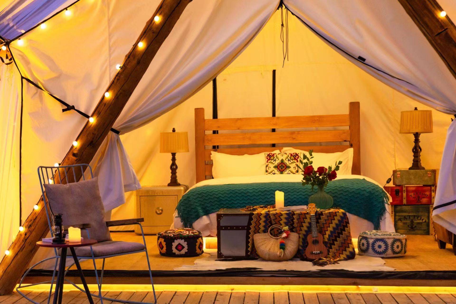 大空间野奢帐篷、比利时进口床垫、浪漫北欧内饰、超五星豪华卫具……带来高品质的露营体验
