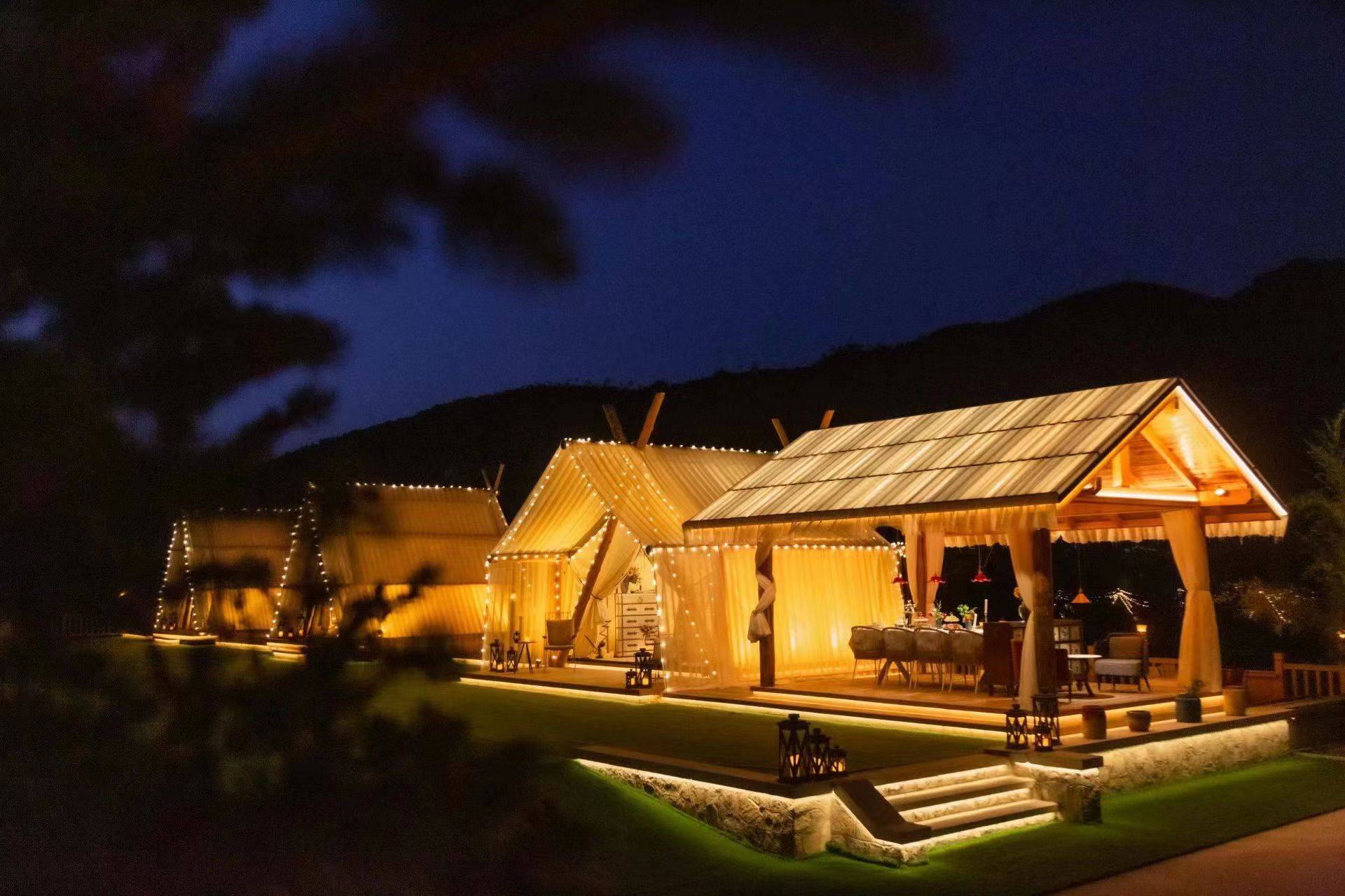将奢华气息与私密环境完美结合,从内容到场景再到个性化体验,用浪漫诠释精致露营是九如山露营地的特色。