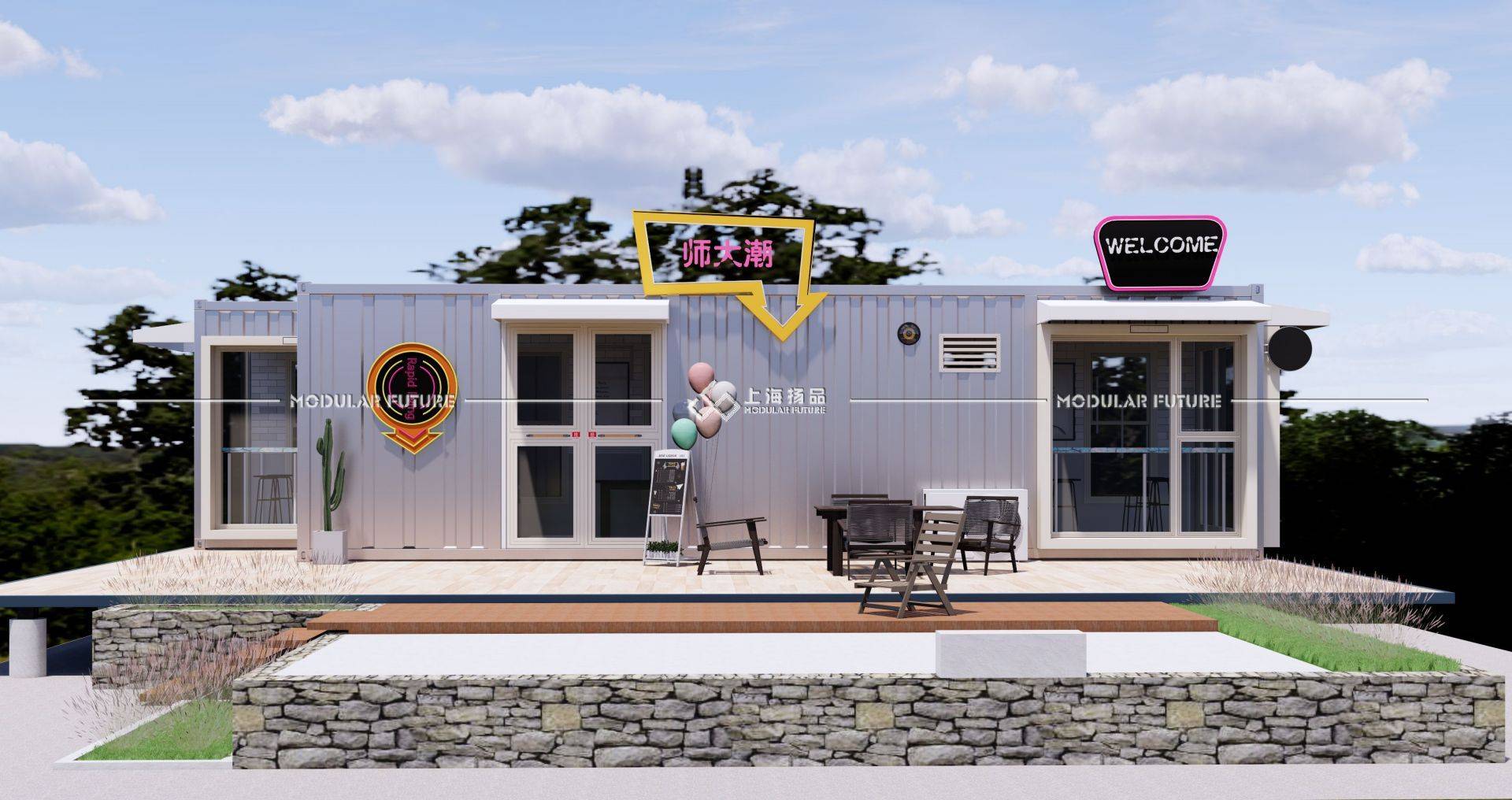 其次,集装箱可以用作咖啡店、奶茶店等商业配套设施。在户外活动中,休息和聊天是一件非常重要的事情,而咖啡和奶茶等饮品的出现可以为人们带来愉悦和放松。