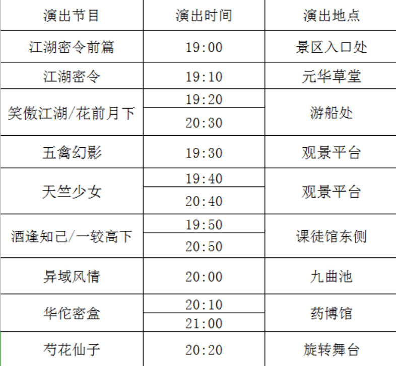华祖庵奇妙夜时间为每周五、周六、周日持续至5月31日 (特殊天气除外),每晚七点到十点, 演出时间七点到九点,温馨提示:今晚(5月5日)暂停演出。