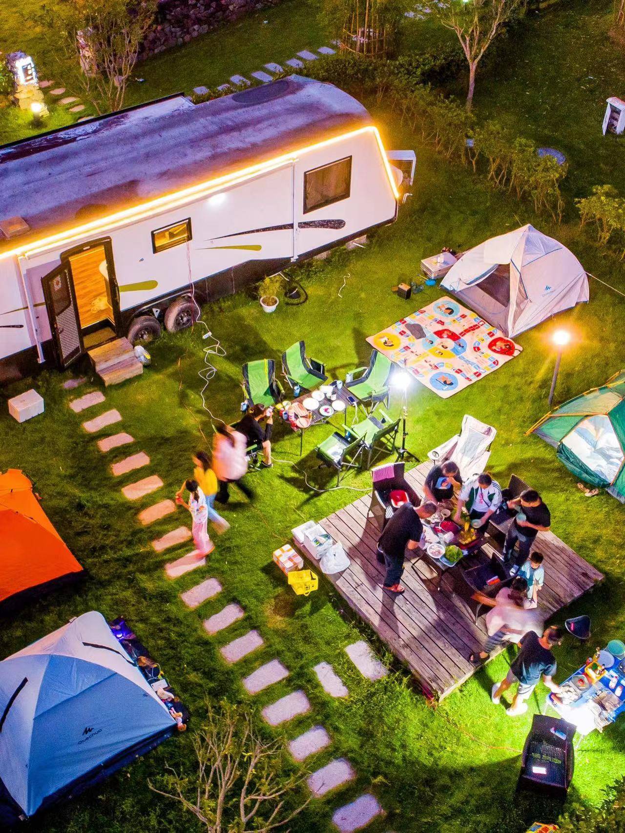 春末夏初时节,徐凫岩的杜鹃已达到最美状态。每一个房车的院子都是由杜鹃花围绕一圈,每个房车的院子都是独立存在的,入住房车的客人建议可以带上一个帐篷,这样有水有电还有卫生间的露营地,来一场夜幕电影,抬头便是星空,浪漫至极。