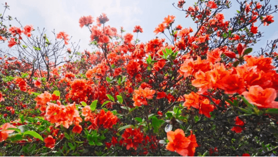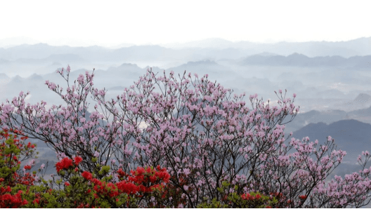 万亩杜鹃花争奇斗艳,交织出杜鹃的海洋、绽放出春的韵味。红色的杜鹃花连绵数十里, 吸引丹寨及周边地区5万余人次同赴“杜鹃花会”。春雨蒙蒙,杜鹃漫漫一场不期而遇的春雨,并未“搅乱”游人赏花的高昂兴致。水珠落在杜鹃花瓣上,让姹紫嫣红的杜鹃花显得晶莹剔透。红的、紫的、白的......万亩杜鹃争相竞放,“燎原”之势蔓延山野,姹紫嫣红分外好看。度假到丹寨,晨起可登顶观云海杜鹃日出磅礴,傍晚可俯瞰赏日落彩霞漫山红遍。四面清风皆入画,一片闲云独看花 ,仿佛置身花的海洋。