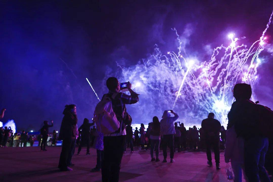 华灯初上,色彩变幻,入夜的尼山圣境仿佛进入了一个流光溢彩的世界,极致梦幻。炫酷无人机、梦幻光影水秀、浪漫烟火,传统文化与现代科技融合,呈现独具尼山美的“璀璨之夜”。