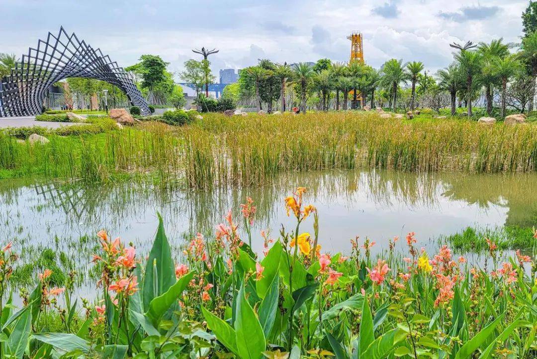 走入活力新港公园,可见绿意盎然、繁花似锦,看点十足。