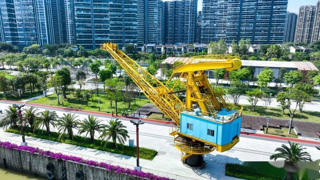 当中,码头港口遗址风景最为抢眼。新园区前身是佛山新港码头。作为重要象征, 以前用于码头货运的龙门吊、码头吊机被悉数保留、粉刷一新,变成充满特色的码头遗址景观。漫步在此,犹如回望码头30年岁月变迁。