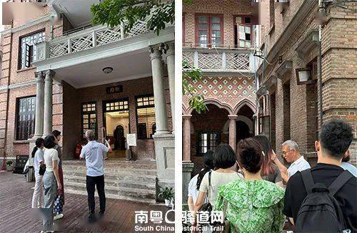 图为杜黎宏生动地向游客们展现史语所作为岭南建筑兼收并蓄的文化特质。