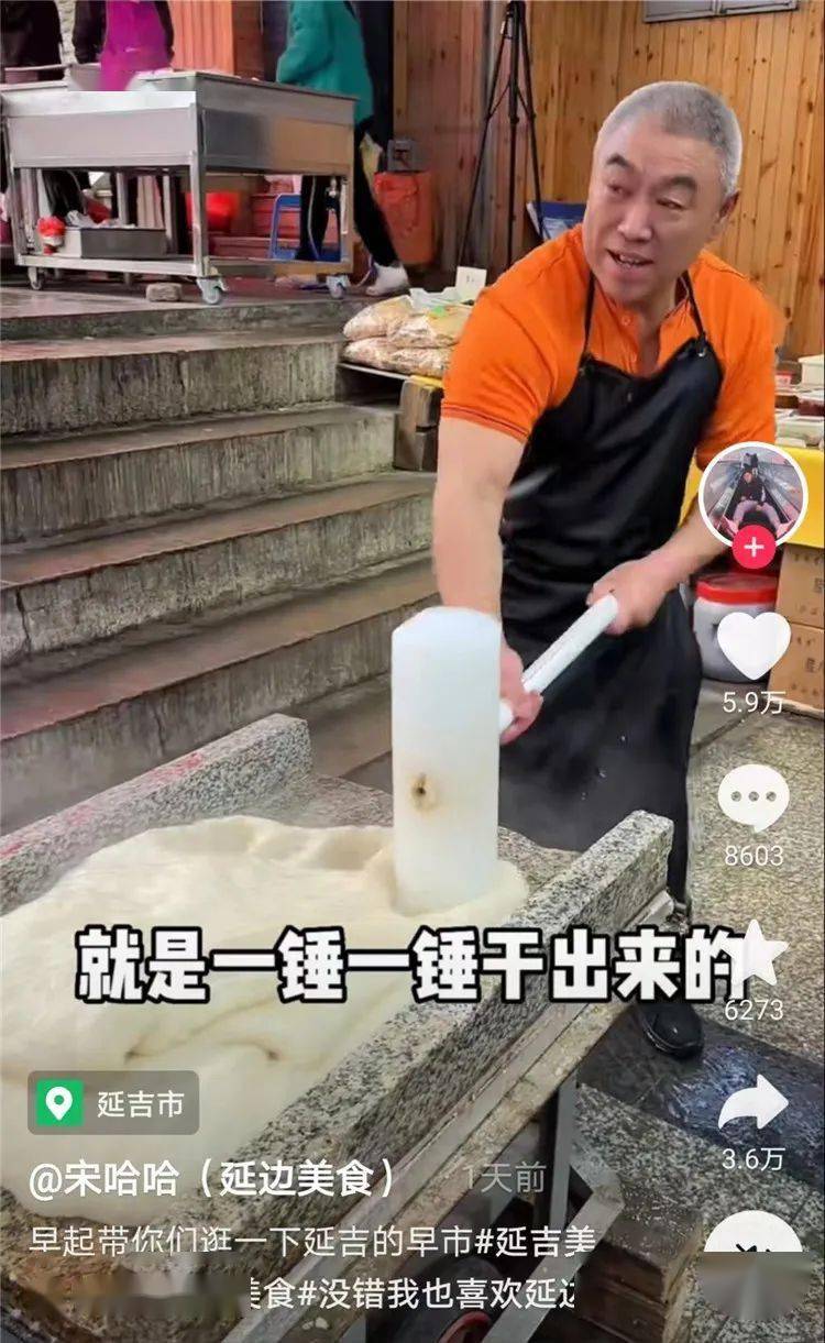 “@宋哈哈(延边美食)”的作品中,他用一条视频带领大家走进延吉河早市(水上市场早市),甜软打糕、香糯米肠、真味明太鱼,还有辣出屏幕的泡菜……各式美食让人垂涎欲滴,网友直呼太上头。视频中,作者还购买了几包干明太鱼作为伴手礼随机送给受访的游客。网友“60后嗨”留言道:“中国朝鲜族是能歌善舞的一个民族,他们热情好客,小吃也是非常有特色。”