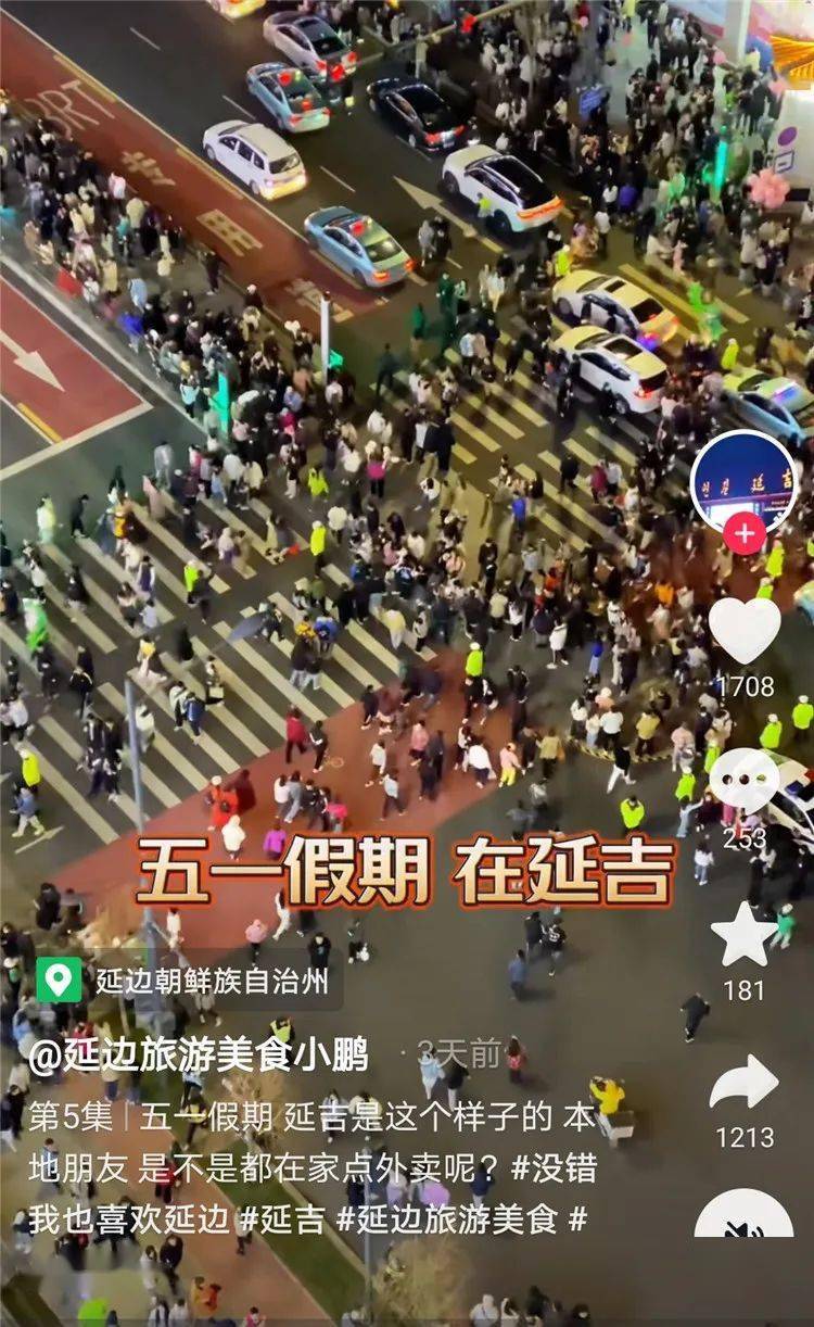在“@延边旅游美食小鹏”的视频作品中,小鹏用几幅航拍大视角镜头,展示了五一假期延吉各景点和打卡地游人如织的画面。网友纷纷留言,表示延吉实在太火太炫太让人爱!网友“@小先森”表示,她在延吉感受到了什么是有温度的城市。她说:“吃饭时遇到两位素不相识的延吉老大哥,他们帮忙点了菜,最后还买了单,这是个有人情味儿的地方。”网友“@承天”说:“从今天开始,延吉列入我的旅行清单了。”